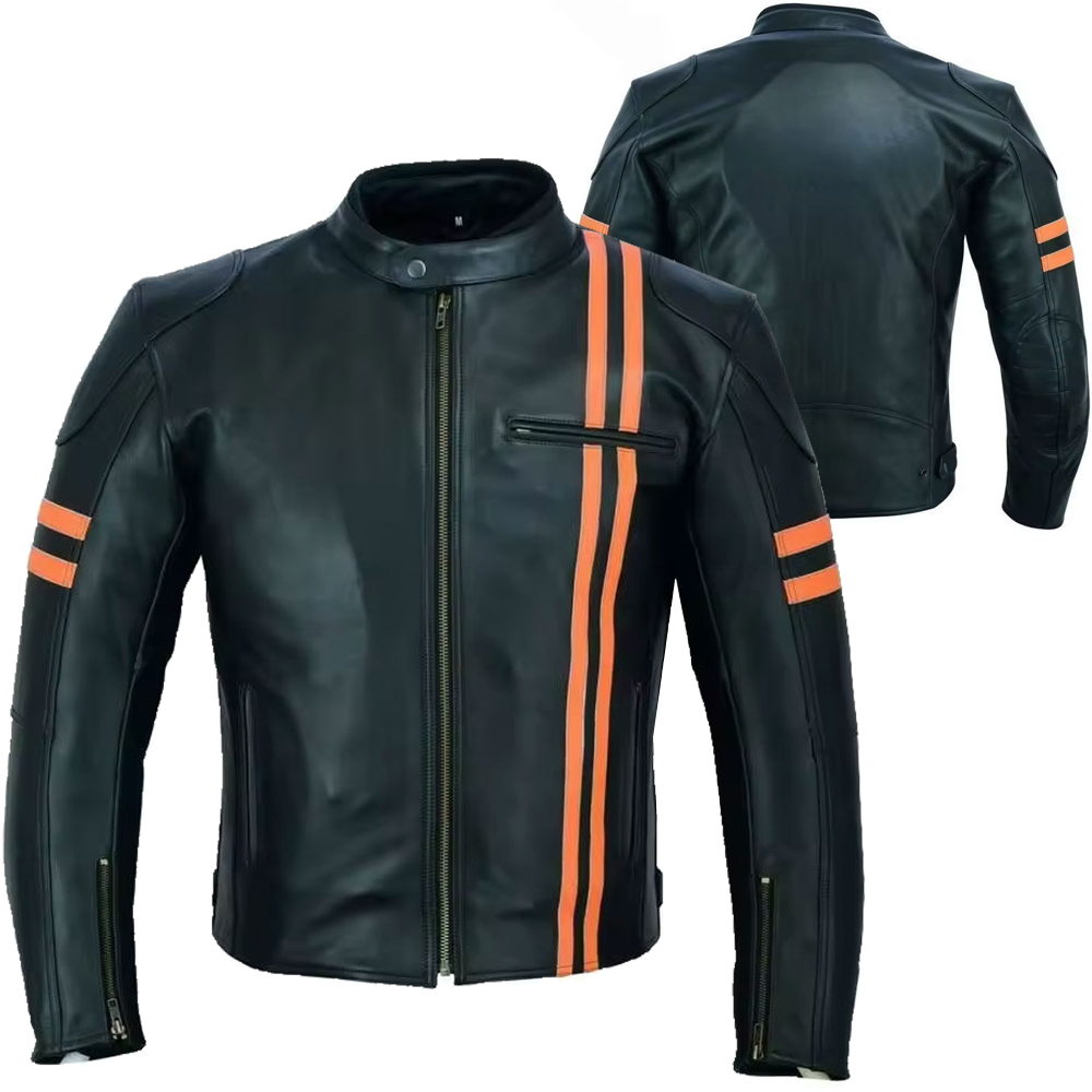 Cowhide leather remains one of the most widely used materials in motorcycle apparel manufacturing due to its dense fiber structure and strong tensile properties. Compared with lighter leather materials, cowhide provides superior abrasion durability and long-term structural stability during riding conditions. For brands sourcing an export quality motorcycle leather jacket, cowhide construction ensures reliable durability suitable for sport riding and motorcycle lifestyle apparel collections.